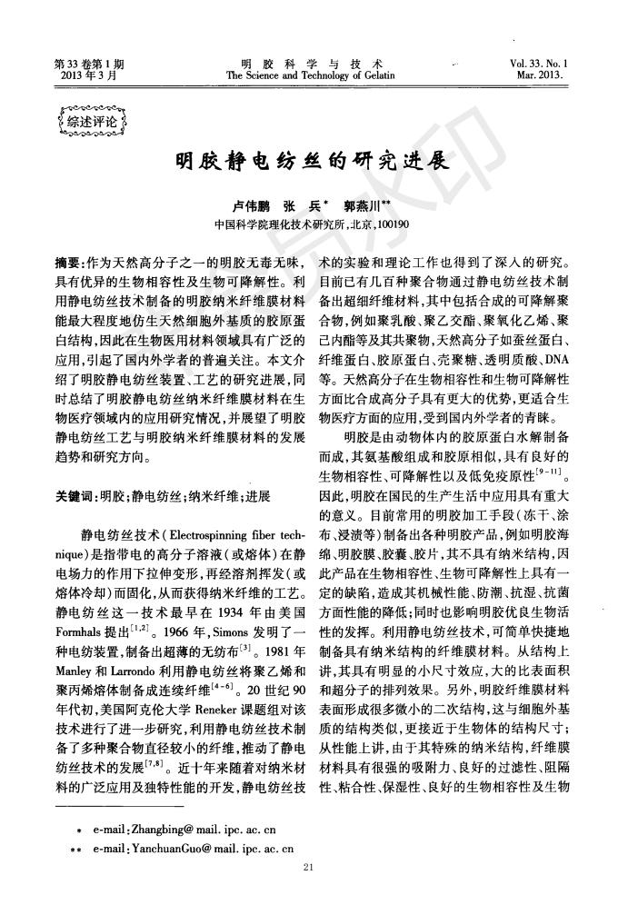 明胶静电纺丝的研究希望