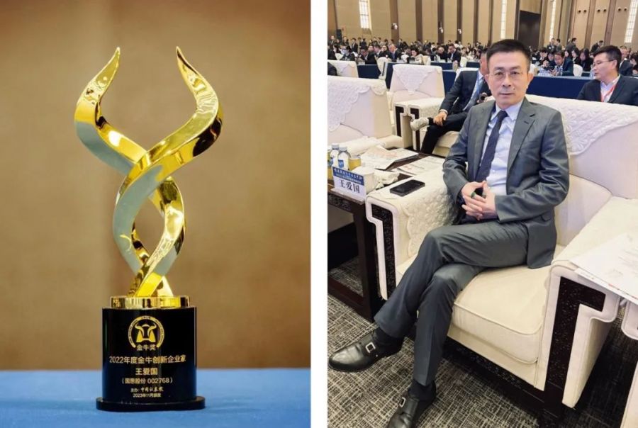 本届评选中,,,,,,,王爱国董事长依附精彩的立异向导力和突出的行业影响力,,,,,,,荣膺“金牛立异企业家奖”。。。。。。