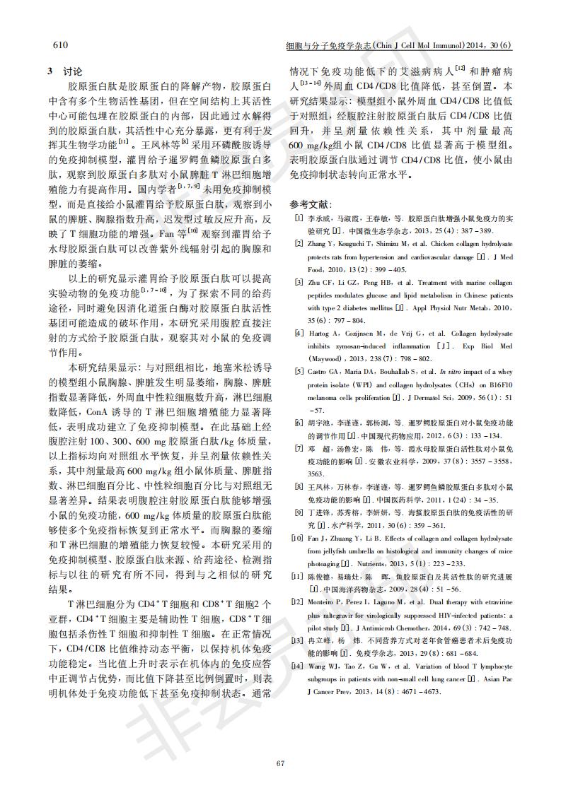 腹腔注射胶原卵白肽增强糖皮质激素免疫抑制模子小鼠的免疫功效