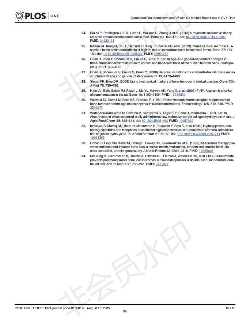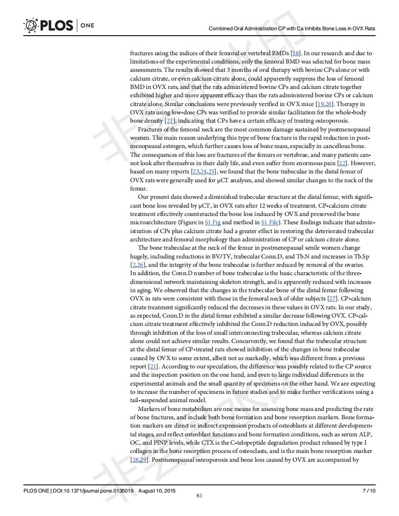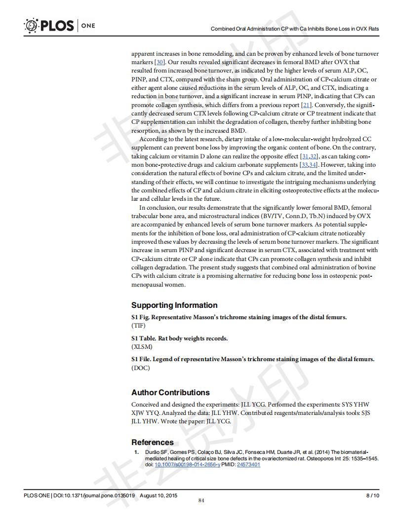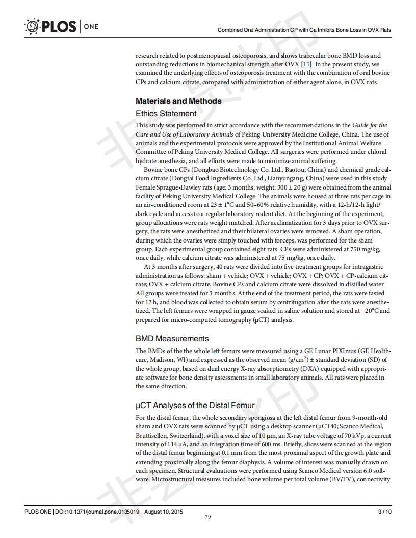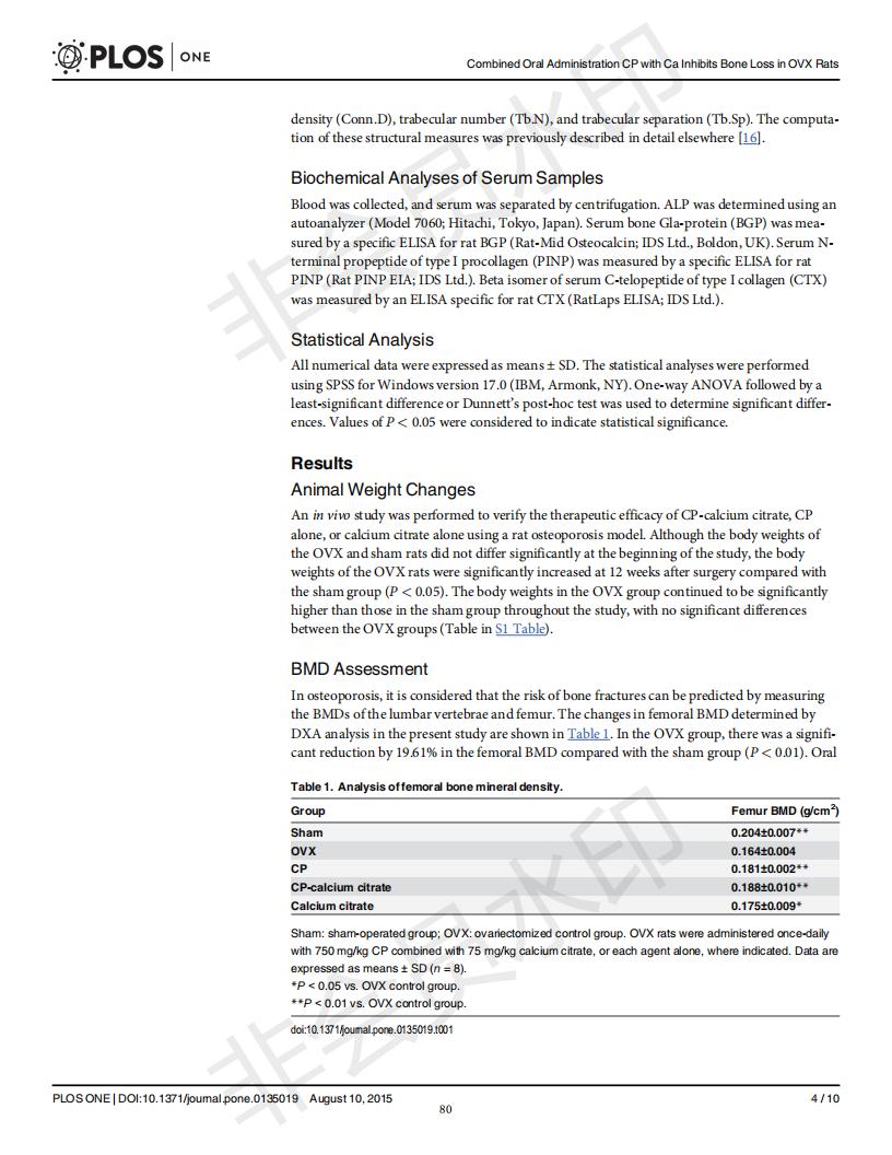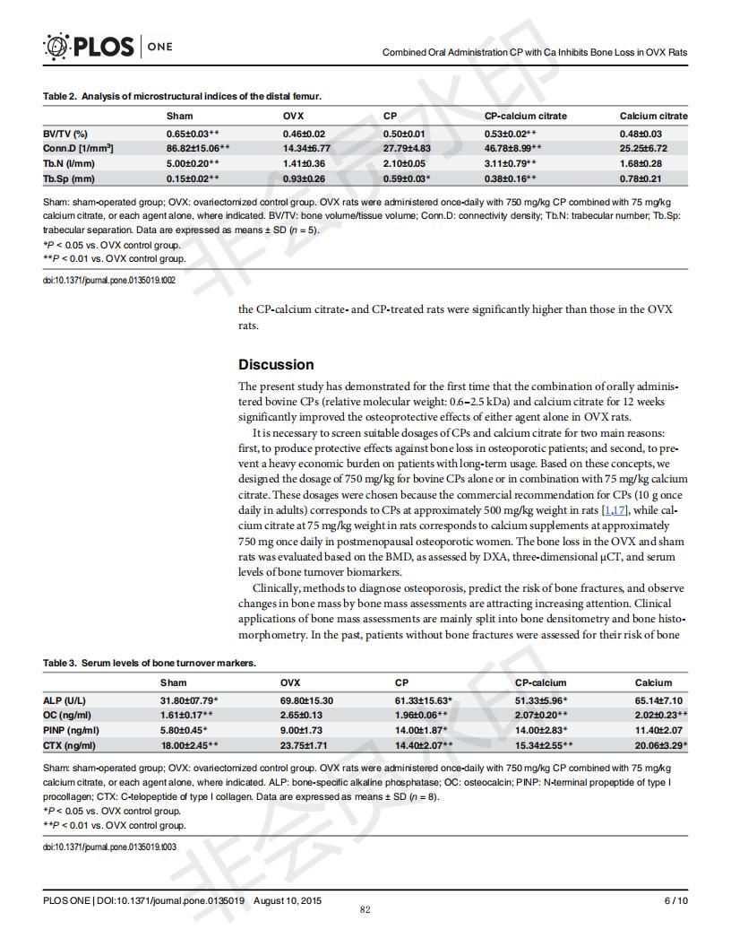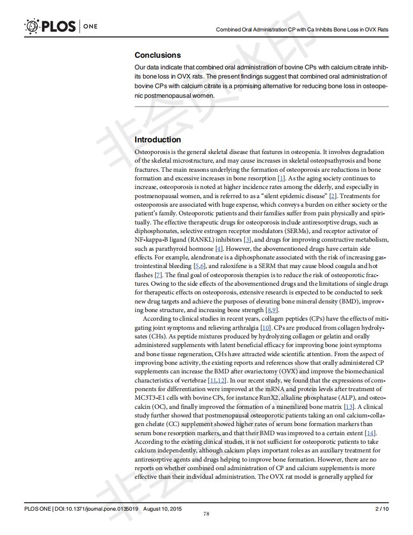 口服骨胶原肽于柠檬酸钙抑制去卵巢大鼠骨丧失
