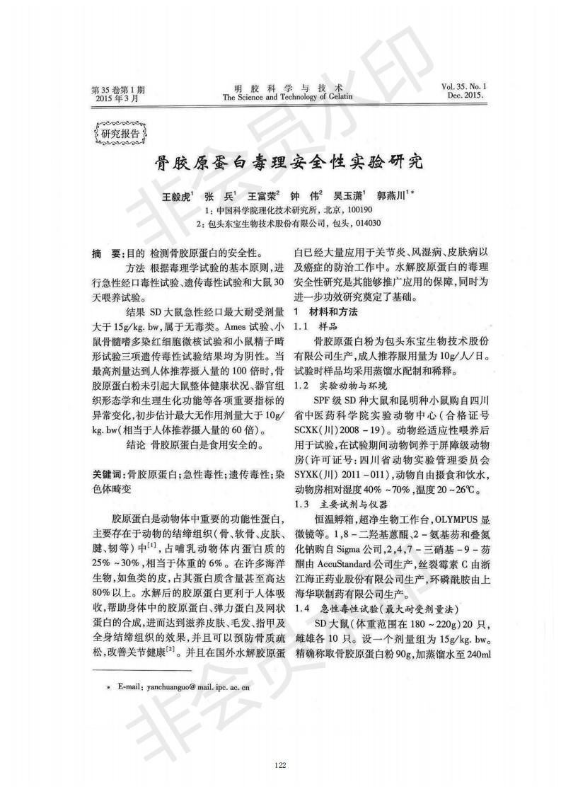 骨胶原卵白毒理清静性实验研究