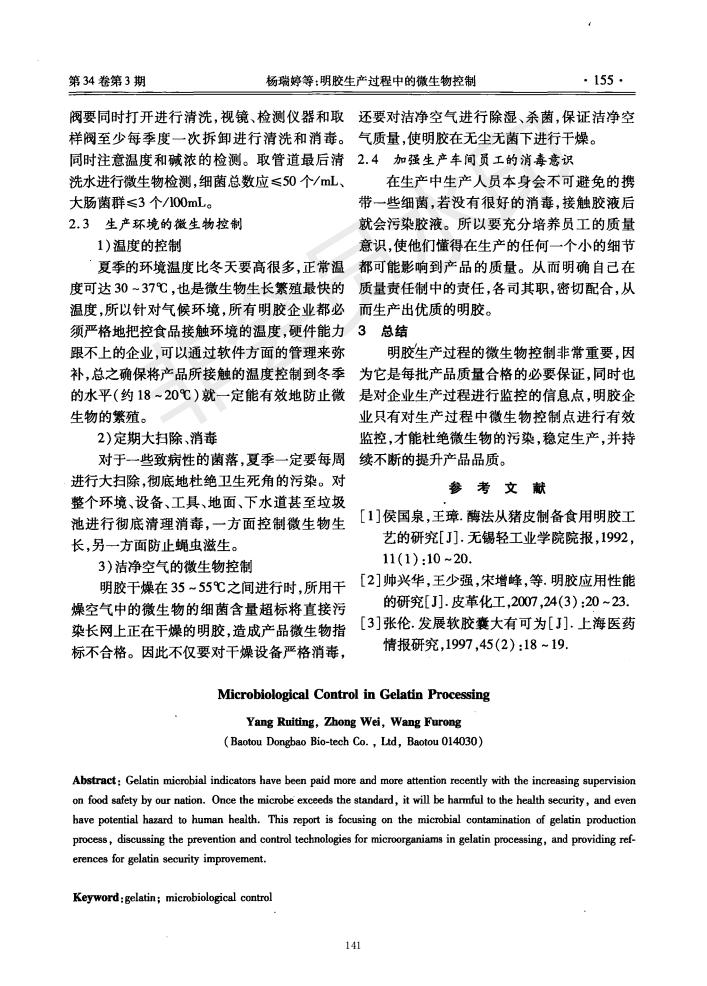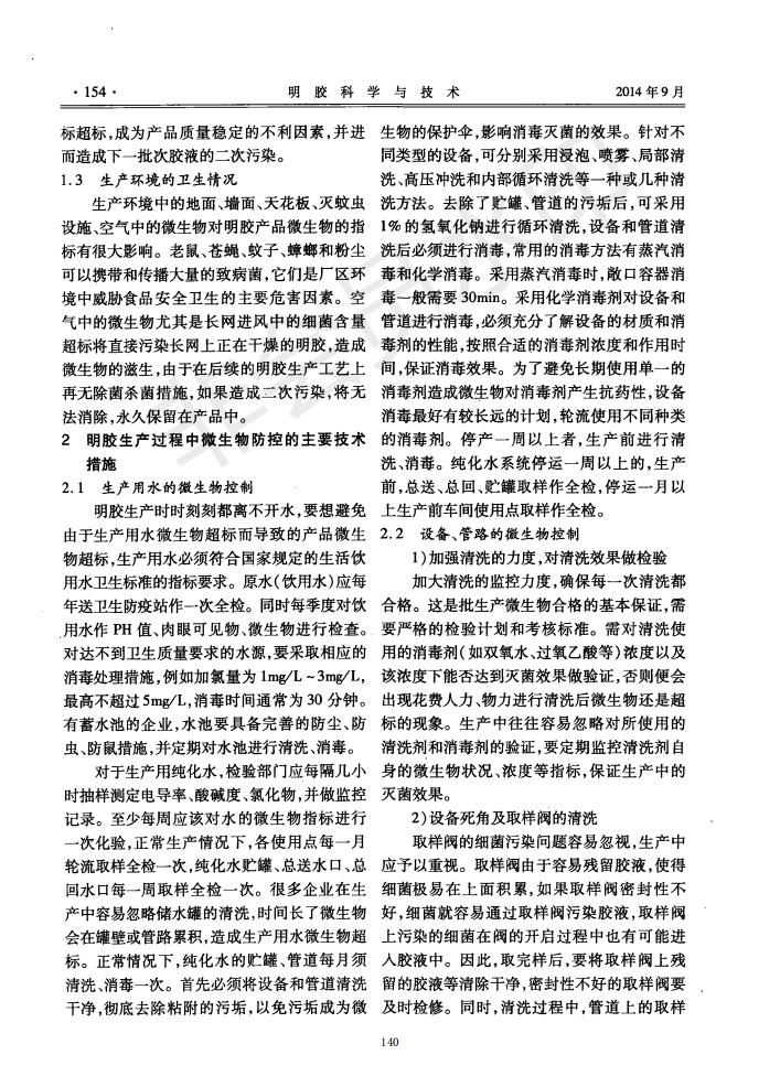 明胶生产历程中的微生物控制