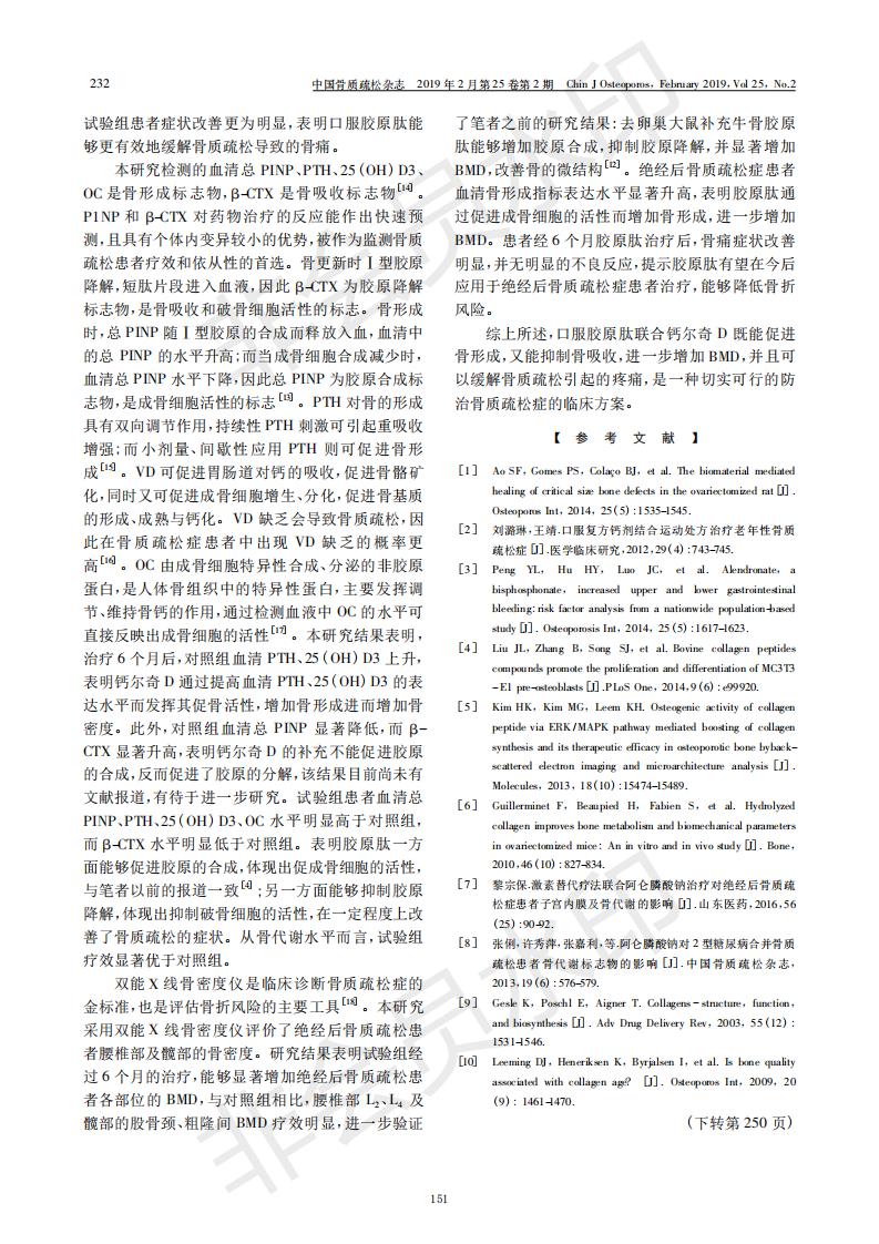 Analysis of the therapeutic effect of collagen peptide combined with Calci D on postmenopausal osteo