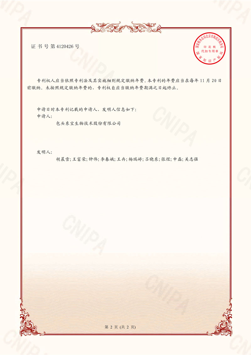 Patent certificate of gelatin heavy metal detection invention
